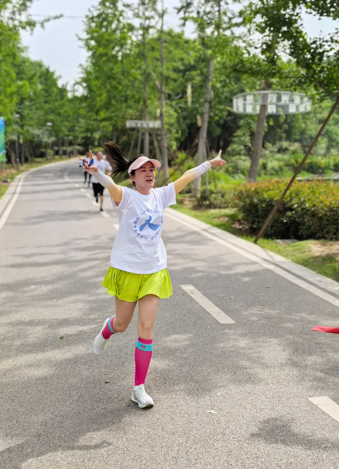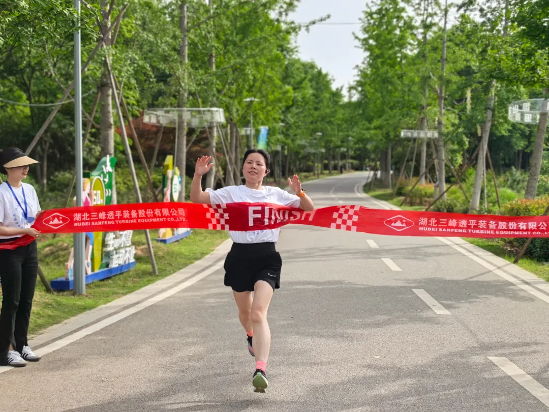 三峰环保技术部马雷以21分44秒成绩率先冲过终点线,三峰环保采购科肖梦夺女子组第一名。